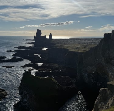 Next up was Snaefellsjökull National Park, filled with rugged cliffs and volcanic rock formations. The views from the top were unreal—like something out of a movie (I half expected to see the Scottish Highlands appear in the distance).