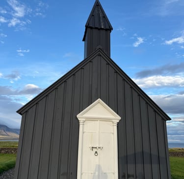 On the way back, we stopped at the iconic Black Church of Búðir (Búðakirkja). The contrast of the black wood against the blue sky and green grass is absolutely stunning.