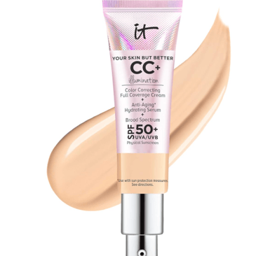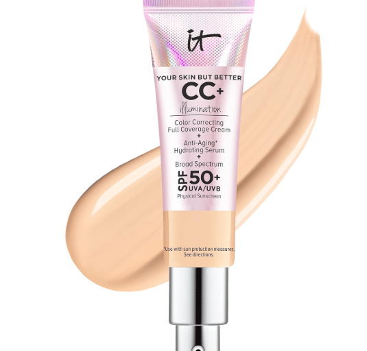 IT Cosmetics CC+ Cream Illumination - Full-Coverage Foundation With SPF 50, Color Corrector & Anti-Aging Serum, Formulated With Niacinamide & Hyaluronic Acid, Radiant Finish. Love that the SPF is 50 and it also contains niacinimide and hyalauronic acid which means it is skincare and makeup all at the same time! It gives you a really dewy finish. Click here for Amazon sale link.