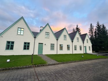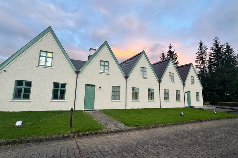 As we explored, we found the tiny Þingvellir Chapel, and to our surprise, it was open. We stepped inside, sat down for a quiet moment, and it felt absolutely surreal — like everything around us was frozen in time. Just next door sits the Parliament Summer House, and we were in awe to learn that the Prime Minister was actually there that evening! Cars were parked all around, but there was no visible security — we could have walked right up to the front door if we wanted to. That calm, welcoming openness is so uniquely Icelandic, and it’s part of what makes Þingvellir one of the most unforgettable places I’ve ever been.