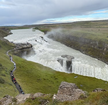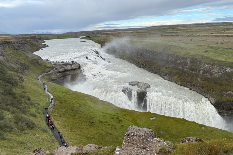 There are multiple viewing paths — from the upper platforms that give you sweeping panoramas to the lower walkway where you feel the spray on your face. It can be busy, but it’s one of those places where the sheer scale and natural beauty drown out the crowds. Standing there, with water roaring around you, you really understand why Gullfoss is an icon of Iceland.